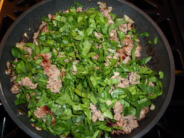 Add the chopped spinach, salt, pepper, nutmeg and oregano. Cook until the spinach has wilted. Drain off any fat and set aside to cool. |